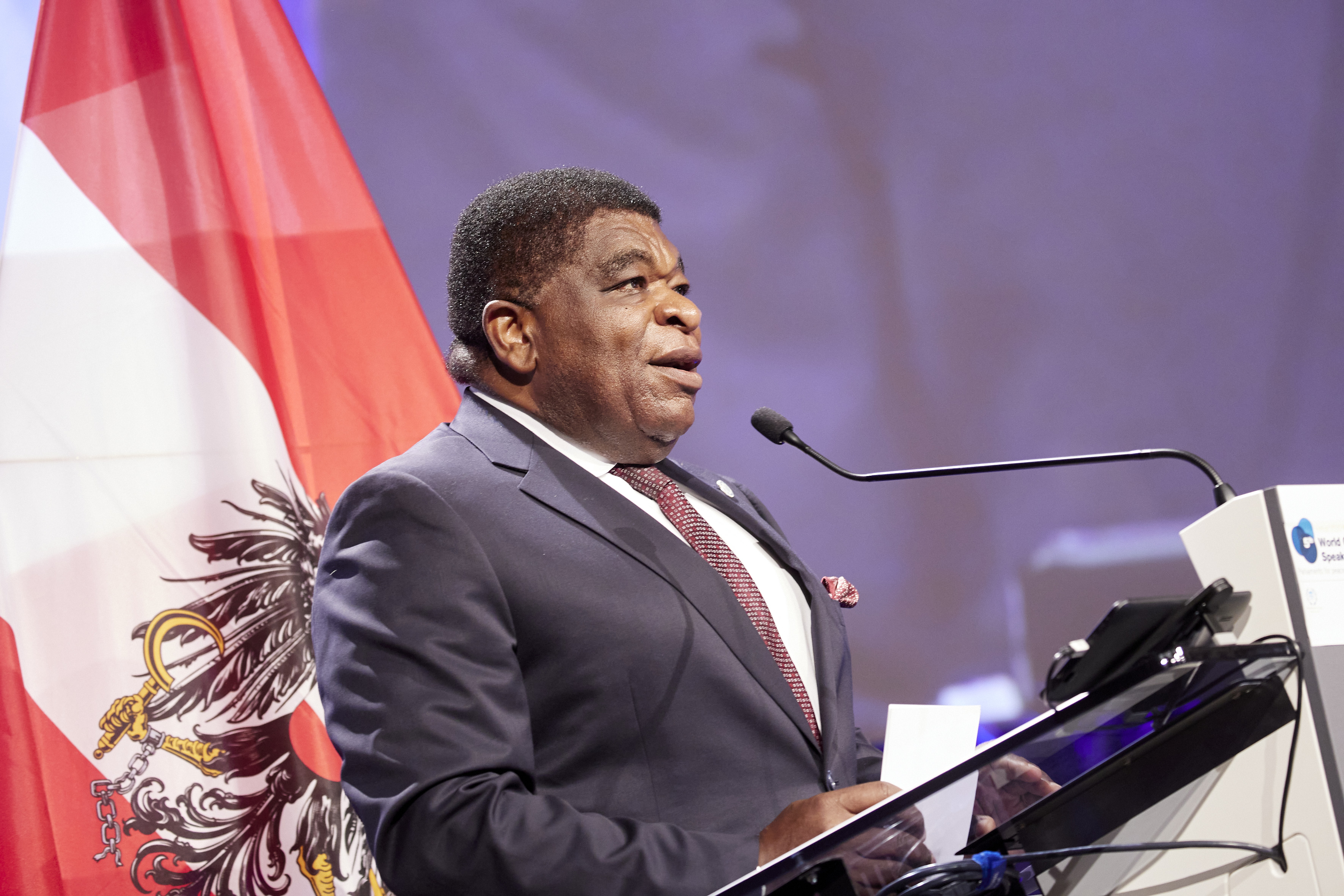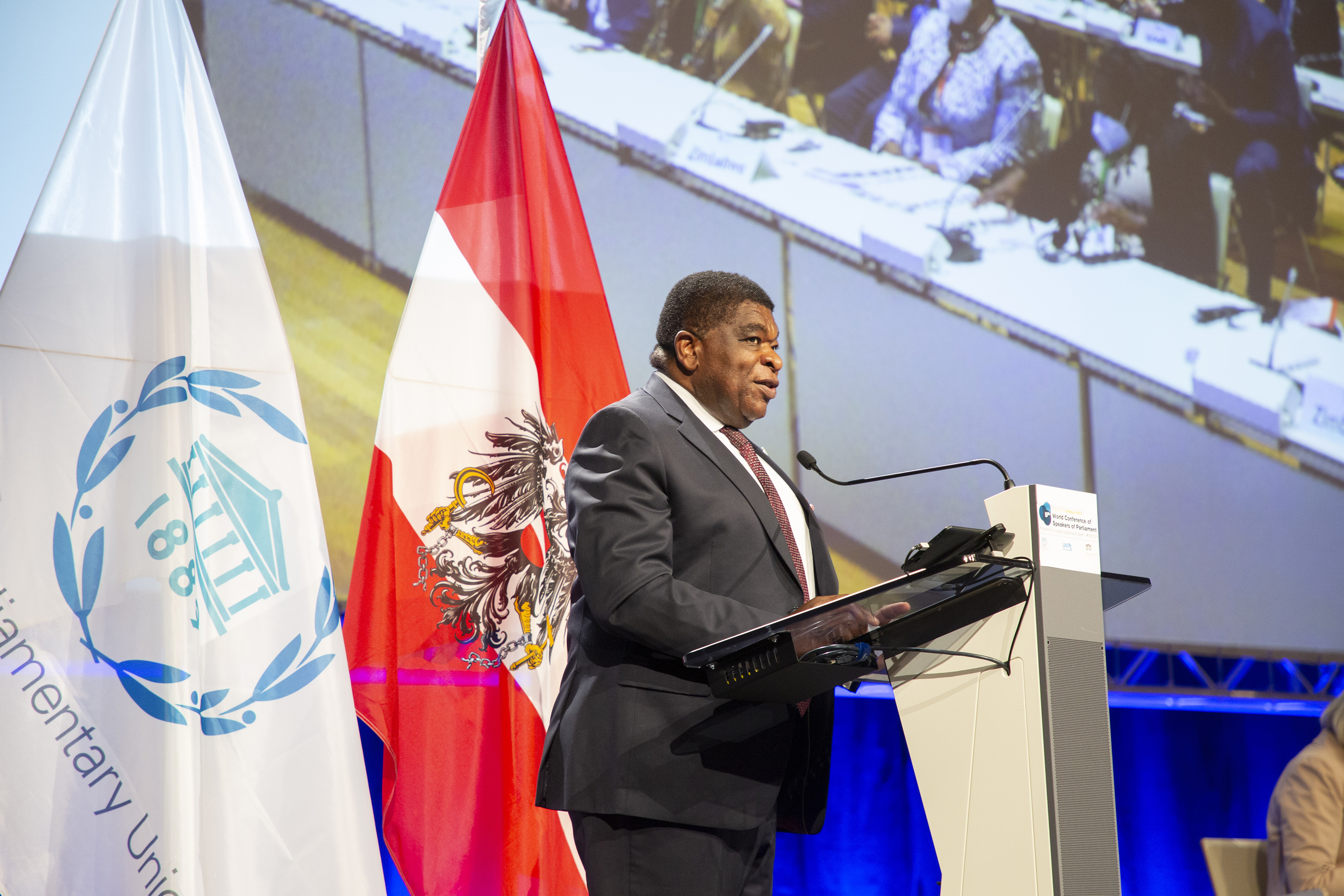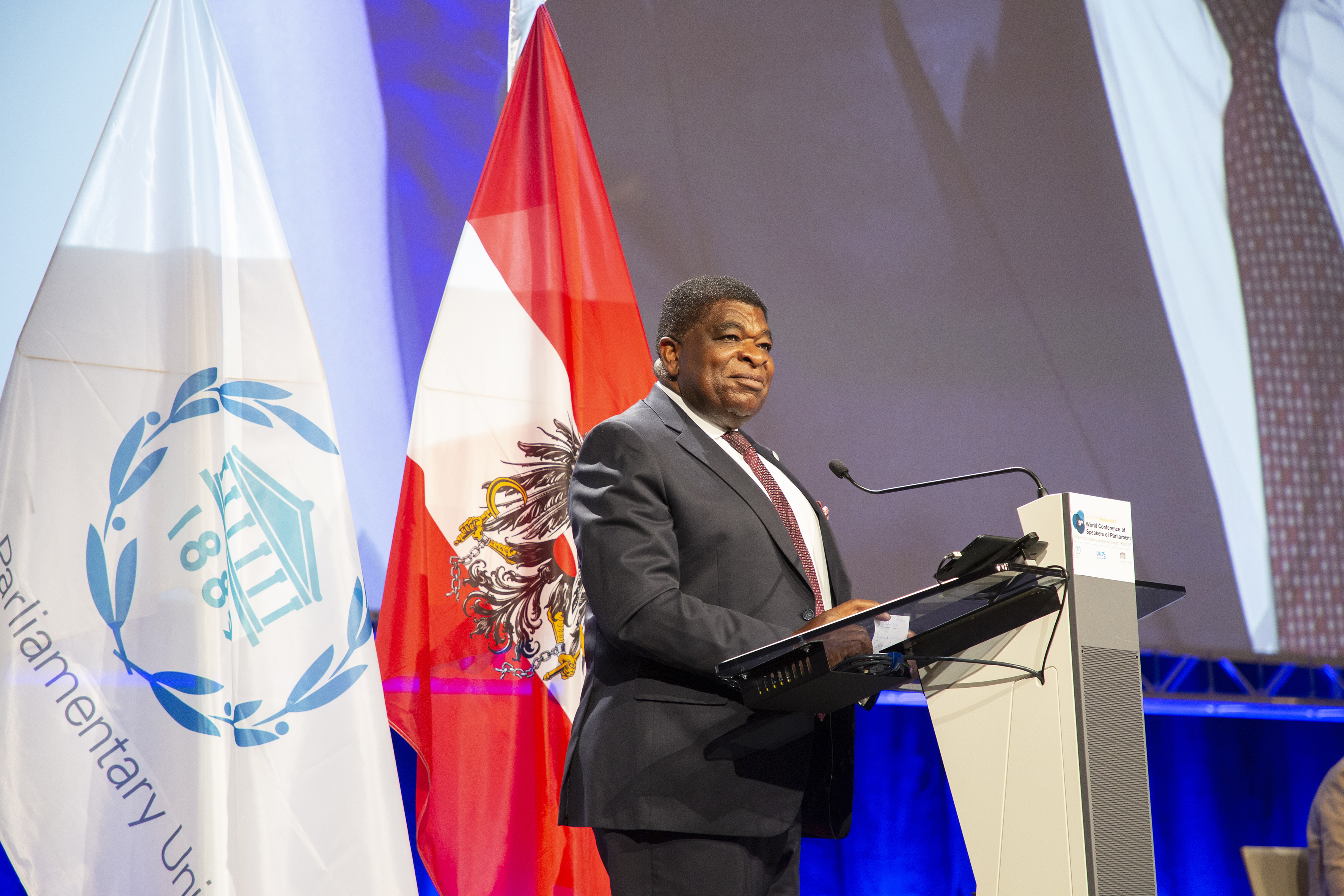 IPU Secretary General, Martin Chungong, welcomes everyone and introduces the two Speakers of the Host Parliament - Inaugural session of the 5WCSP / Parlamentsdirektion/Thomas Topf