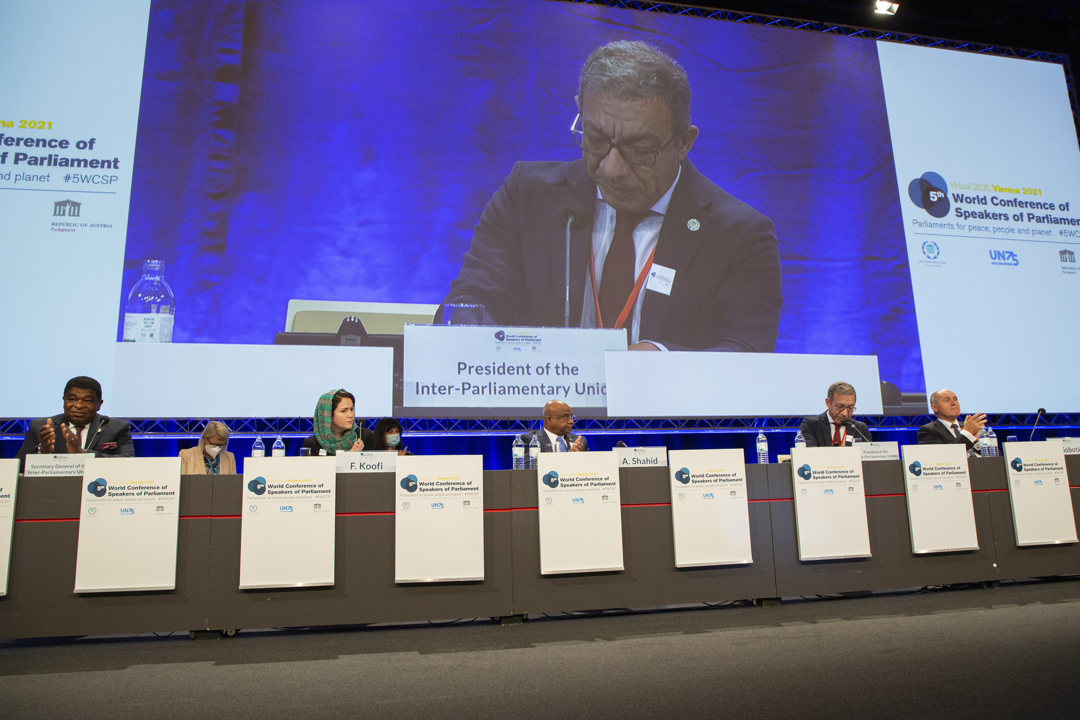 Inaugural session of the 5WCSP, IPUPACHECO, Speaker Panel / Parlamentsdirektion/Wieser