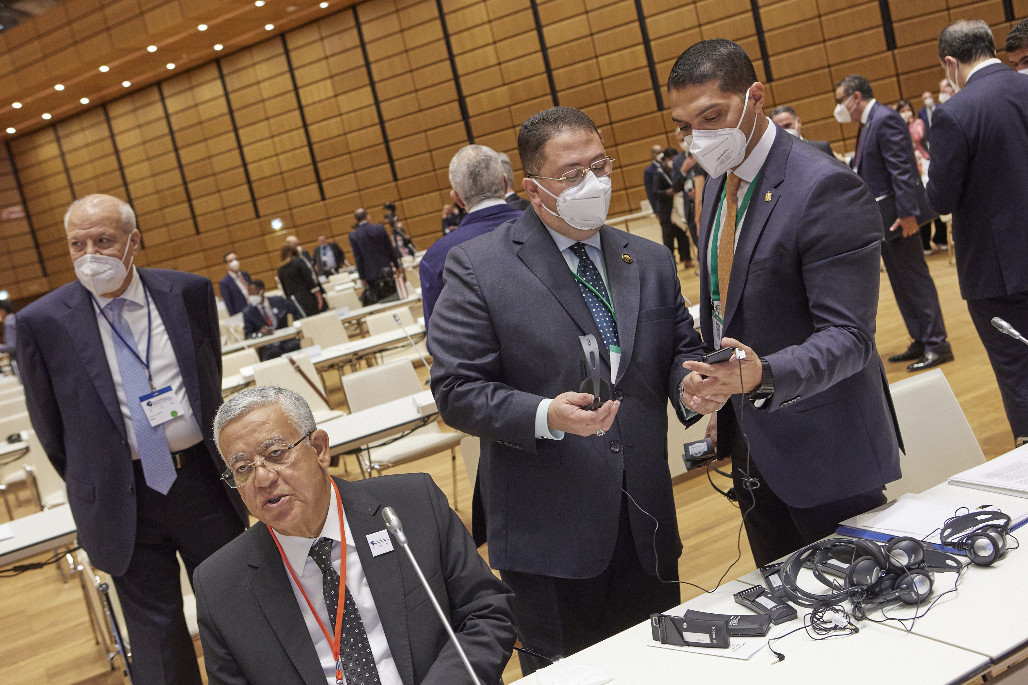 From löeft: SHAHID, Abdulla (Mr.), President of the UN General Assembly, Speaker of the Austrian Federal Council, Mr. P. Raggl - Inaugural session of the 5WCSP