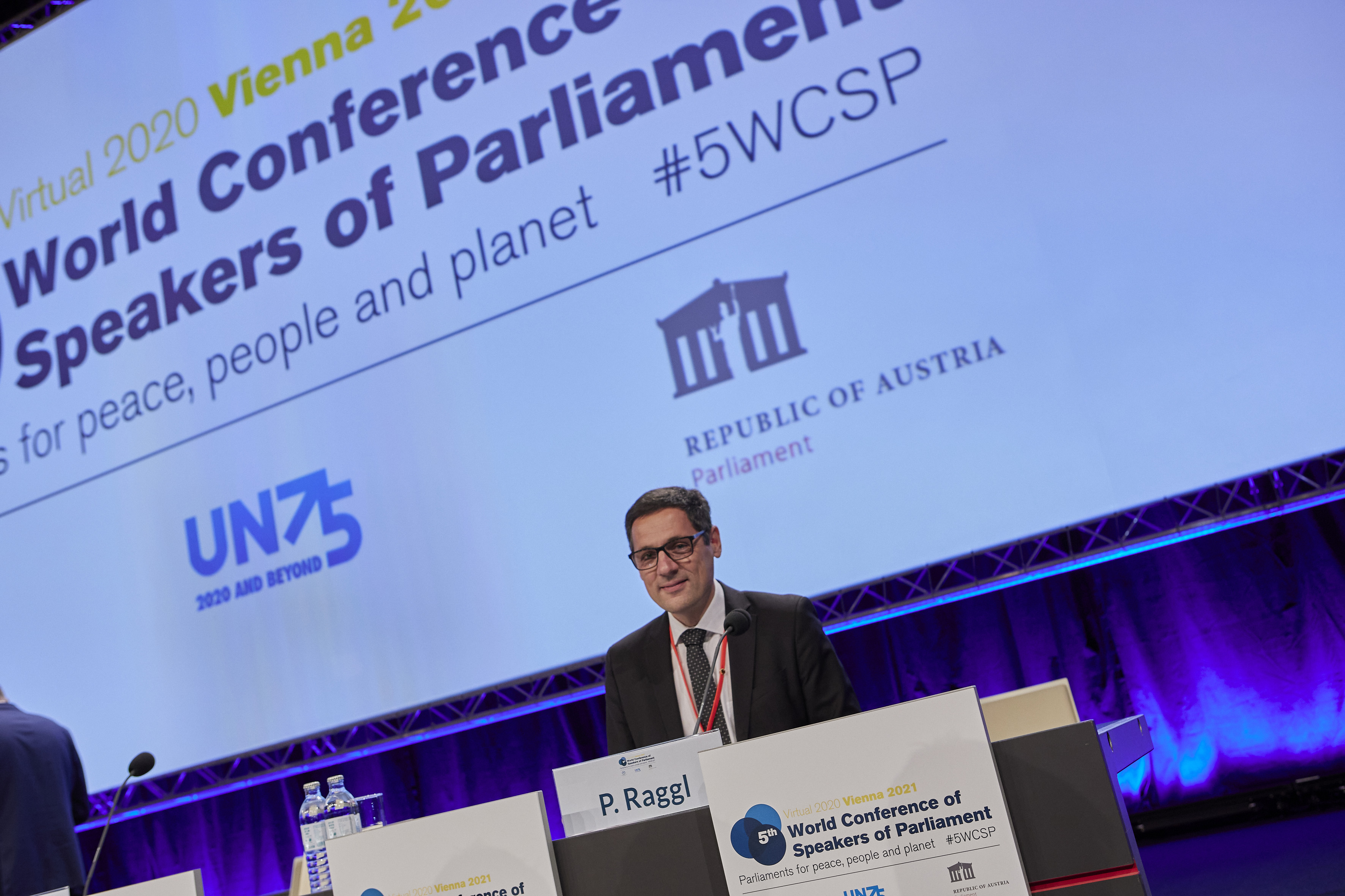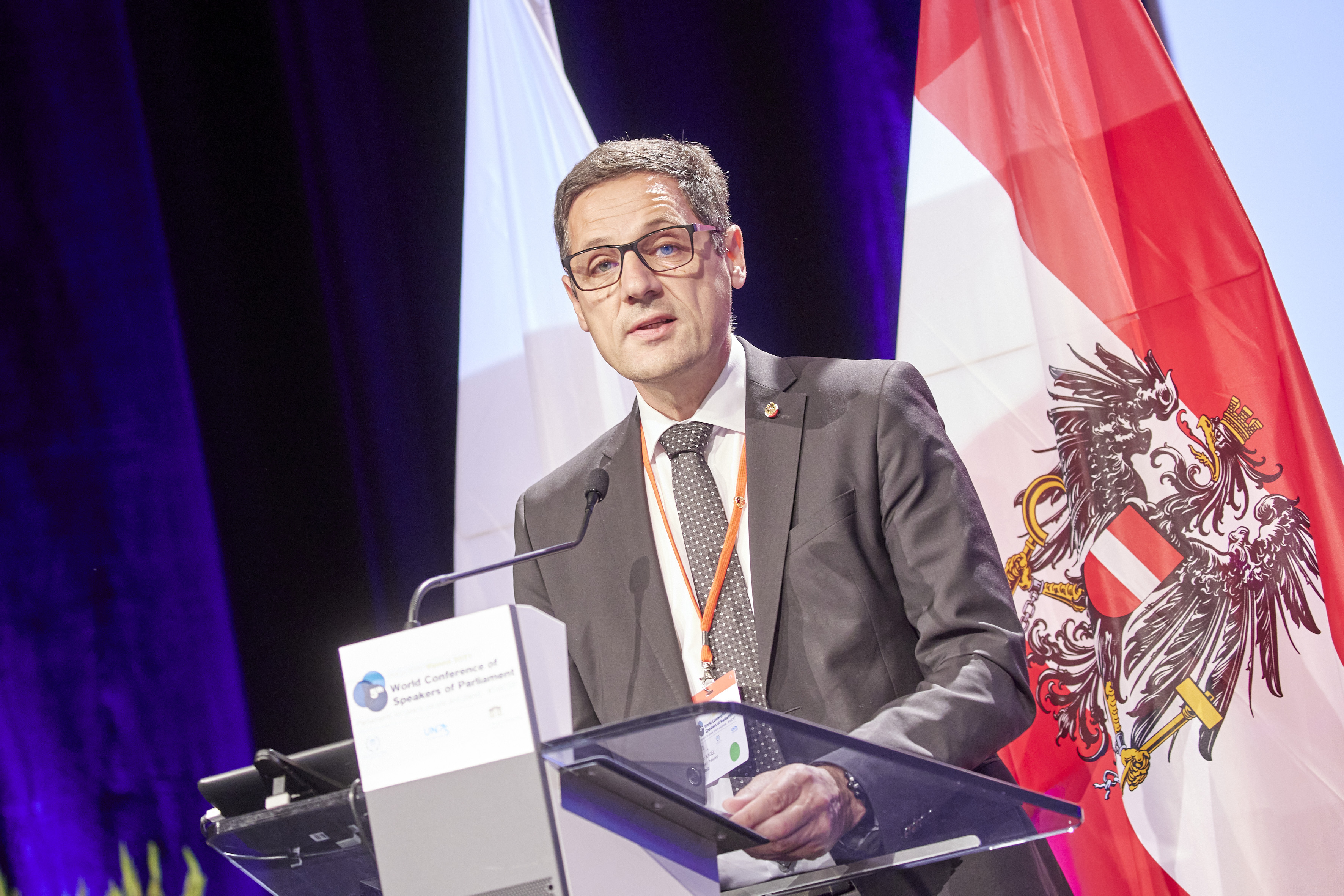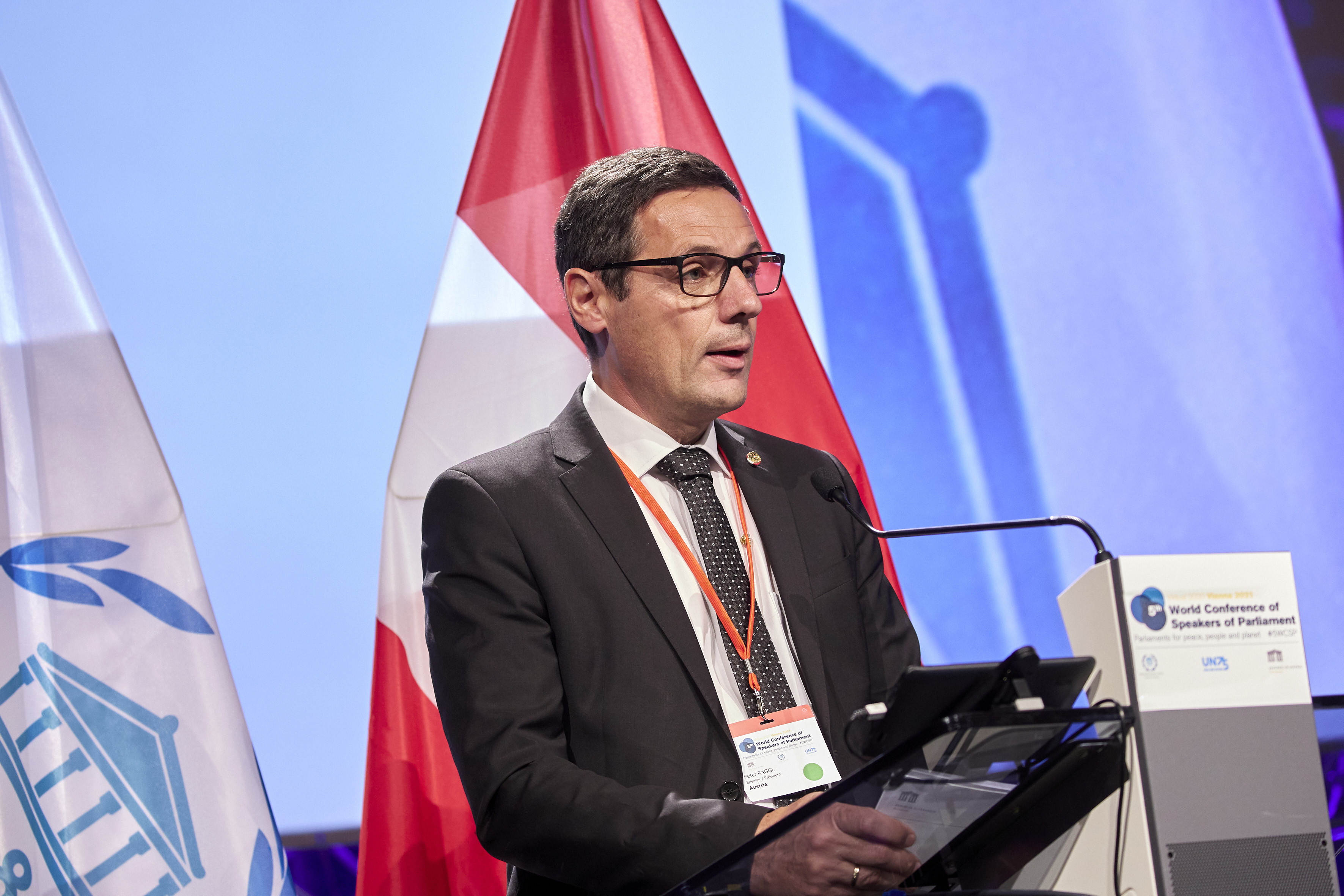 Speaker of the Austrian Federal Council, Mr. P. Raggl, addresses opening remarks - Inaugural session of the 5WCSP / Parlamentsdirektion/Thomas Topf