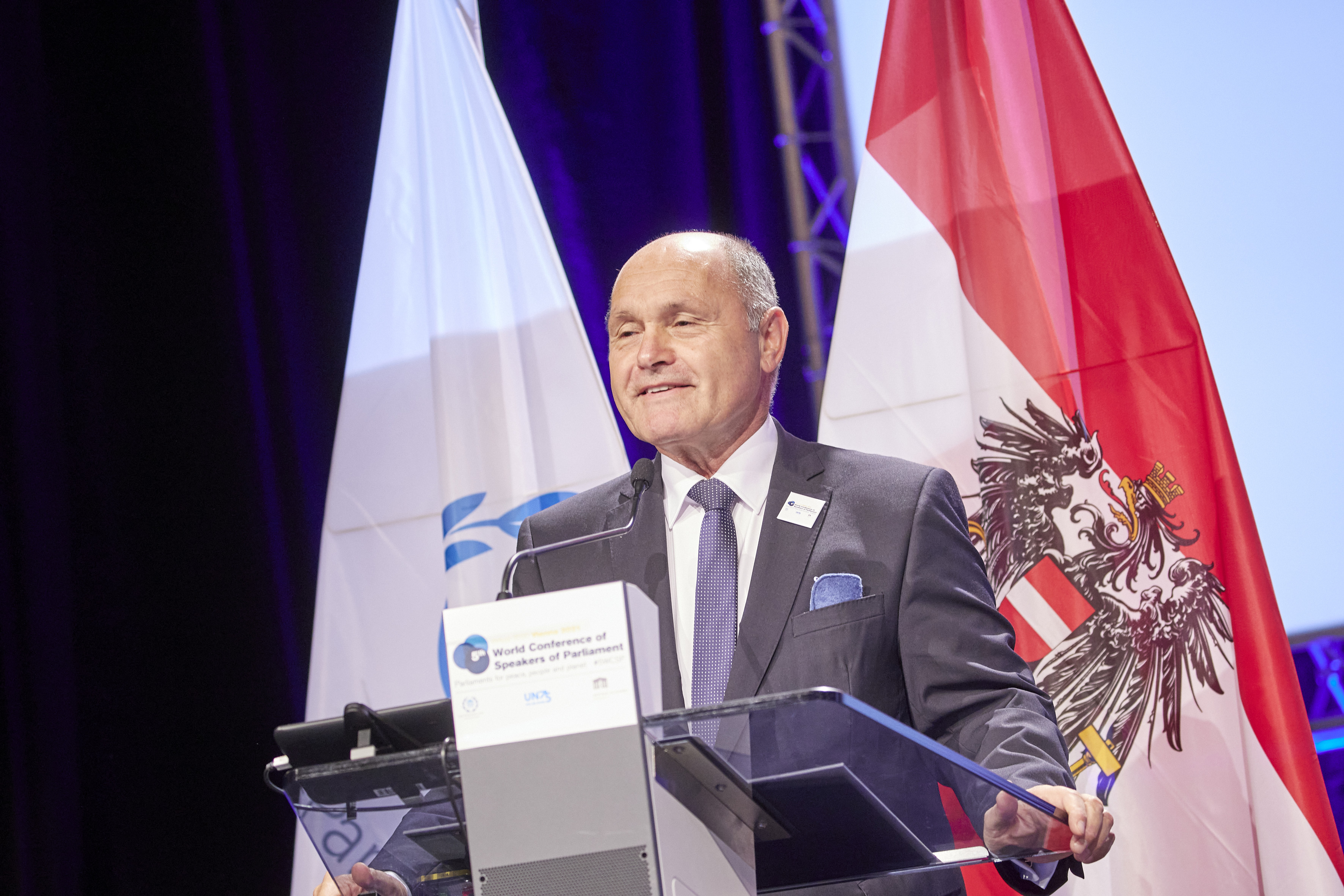 Mr. Wolfgang Sobotka, President of the National Council (Austria) addresses opening remarks - Inaugural session of the 5WCSP / Parlamentsdirektion/Thomas Topf