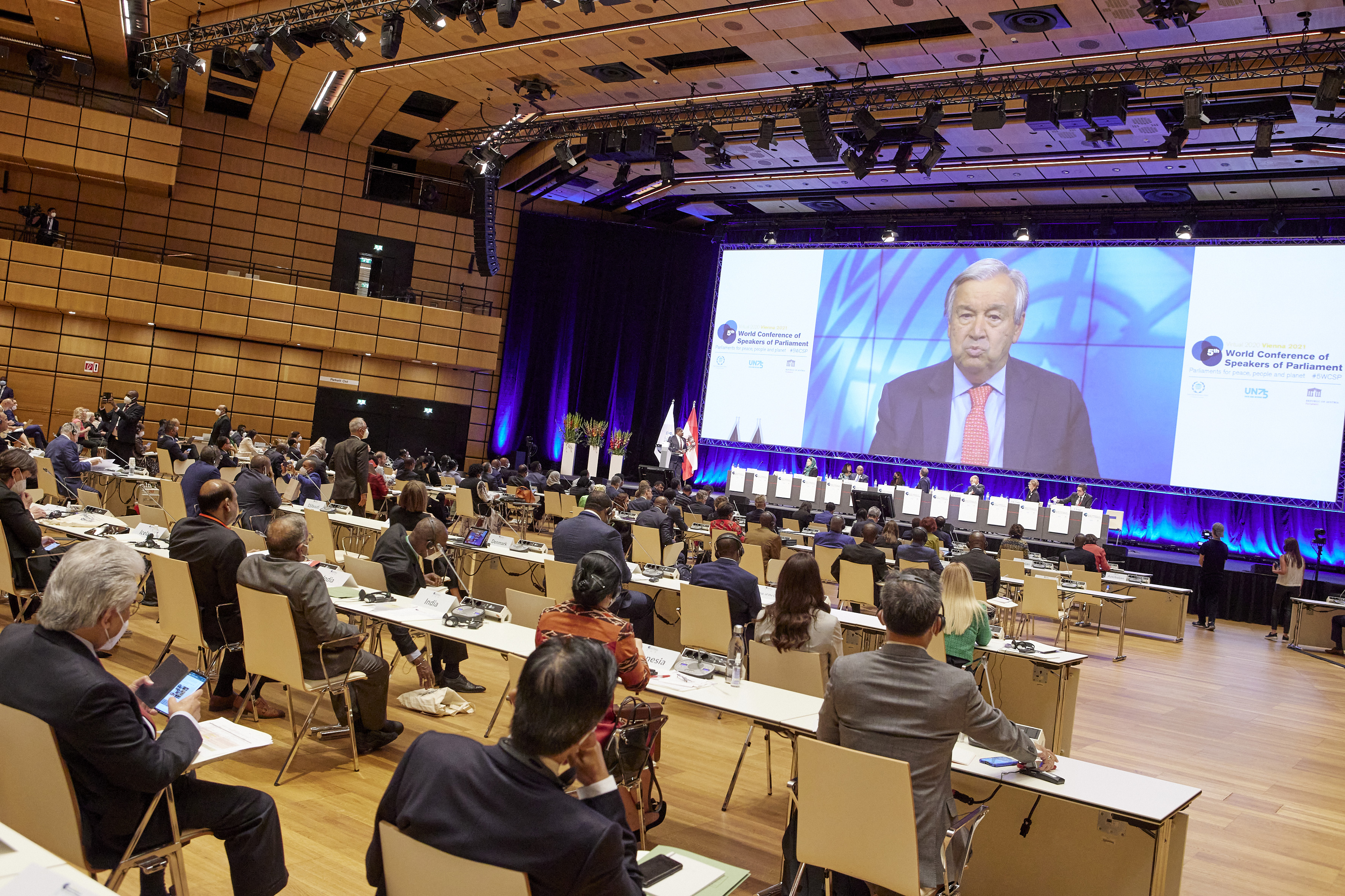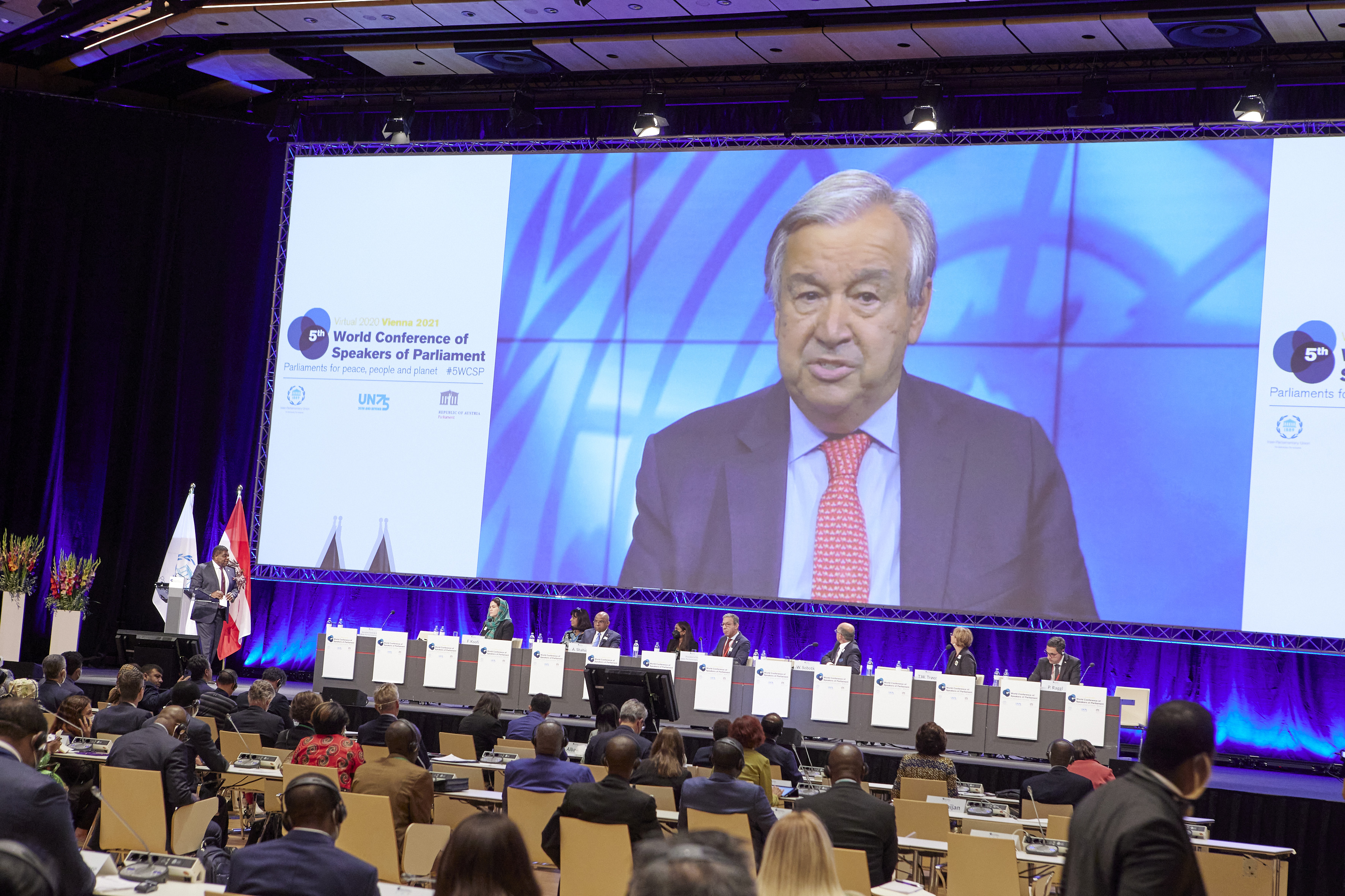 video message from UNSG Mr. Antonio Guterres - Inaugural session of the 5WCSP / Parlamentsdirektion/Thomas Topf