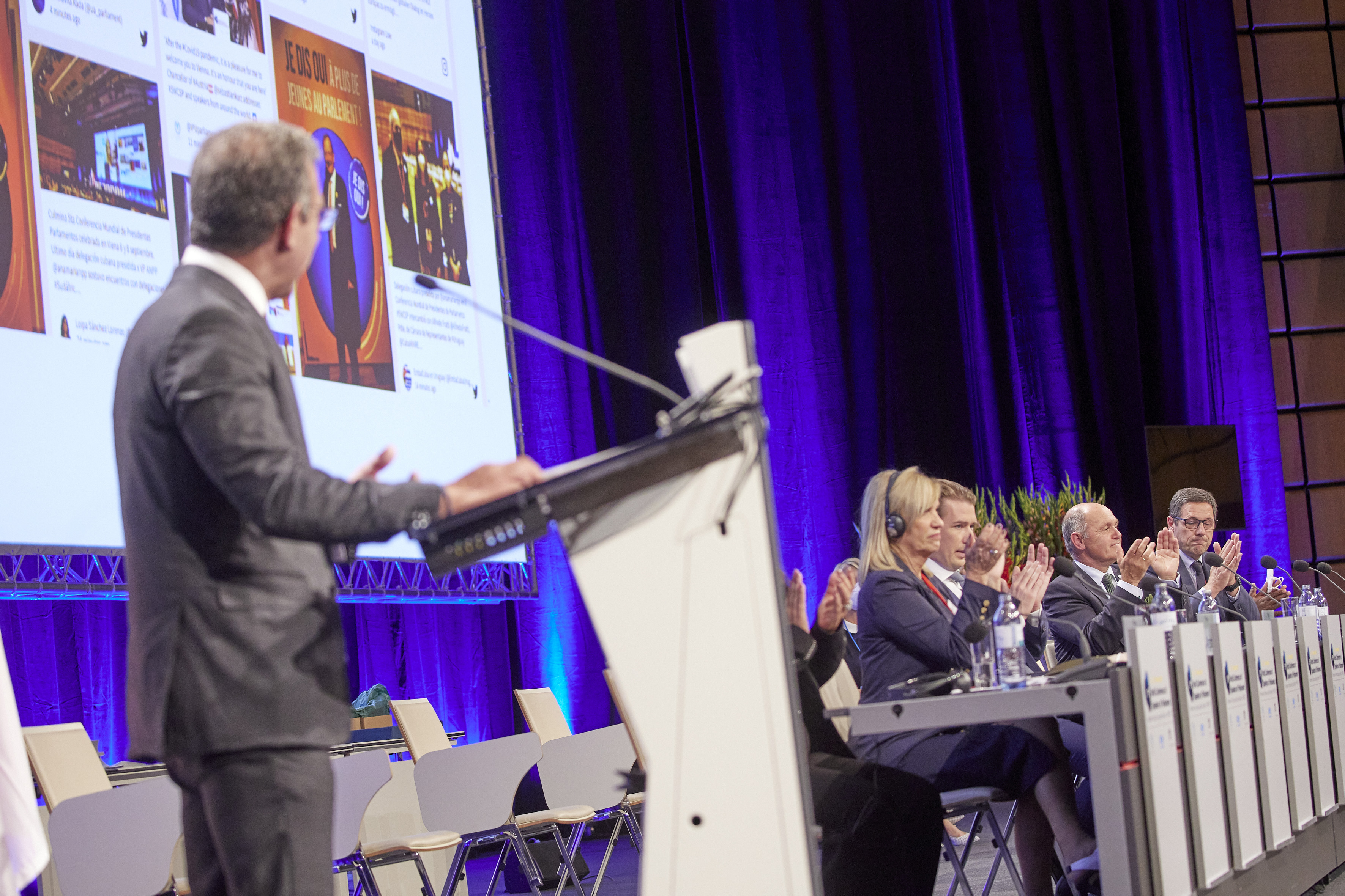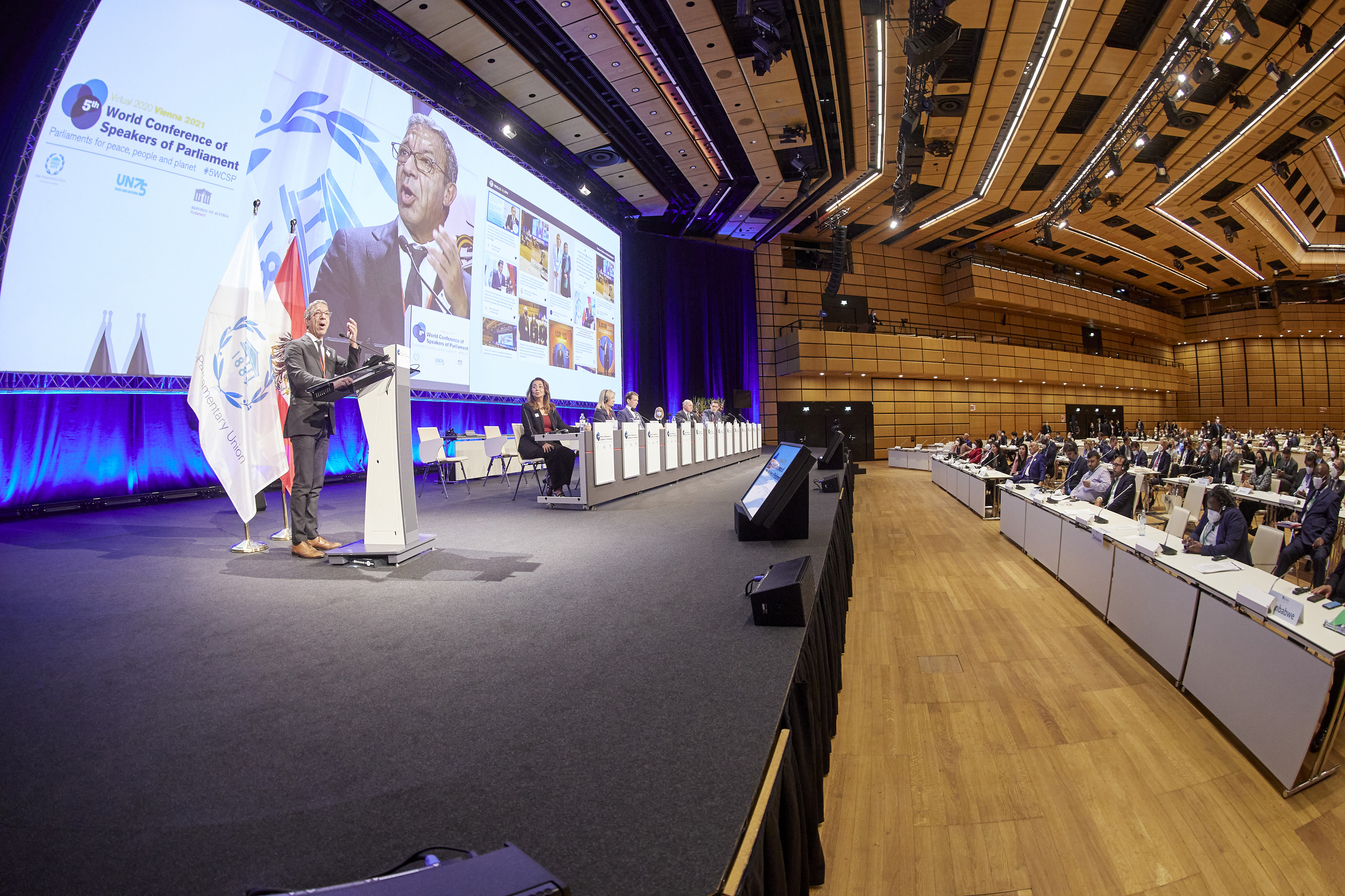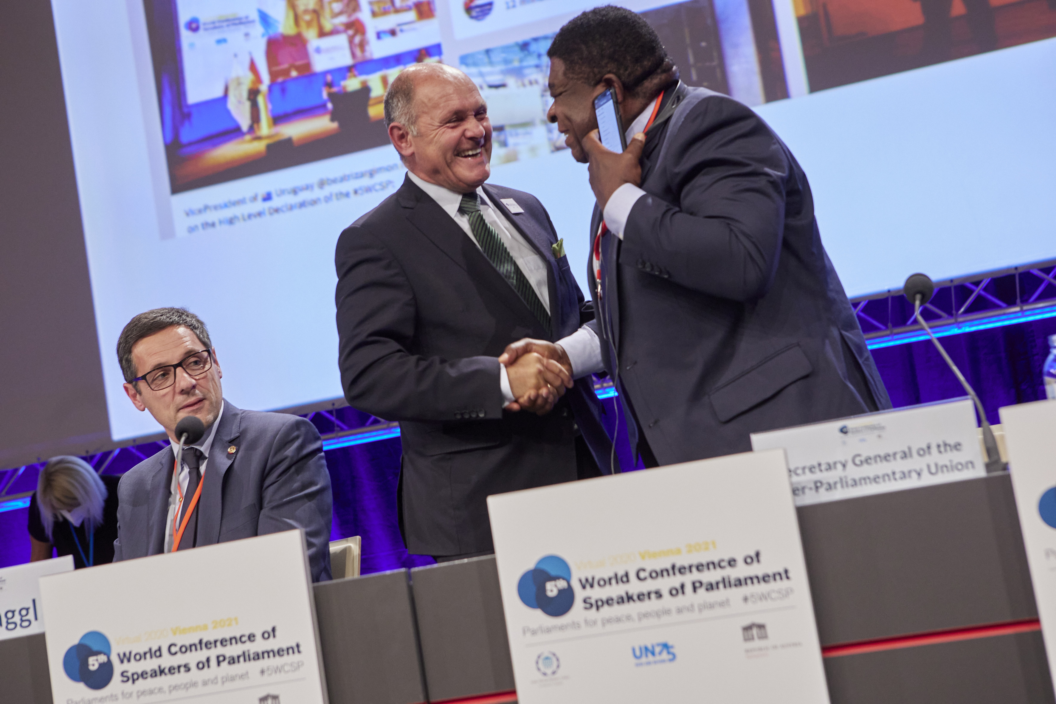 From left: PACHECO, Duarte (Mr.), President of the IPU, Mr. Wolfgang Sobotka, President of the National Council (Austria) - Closing session / Parlamentsdirektion/Thomas Topf