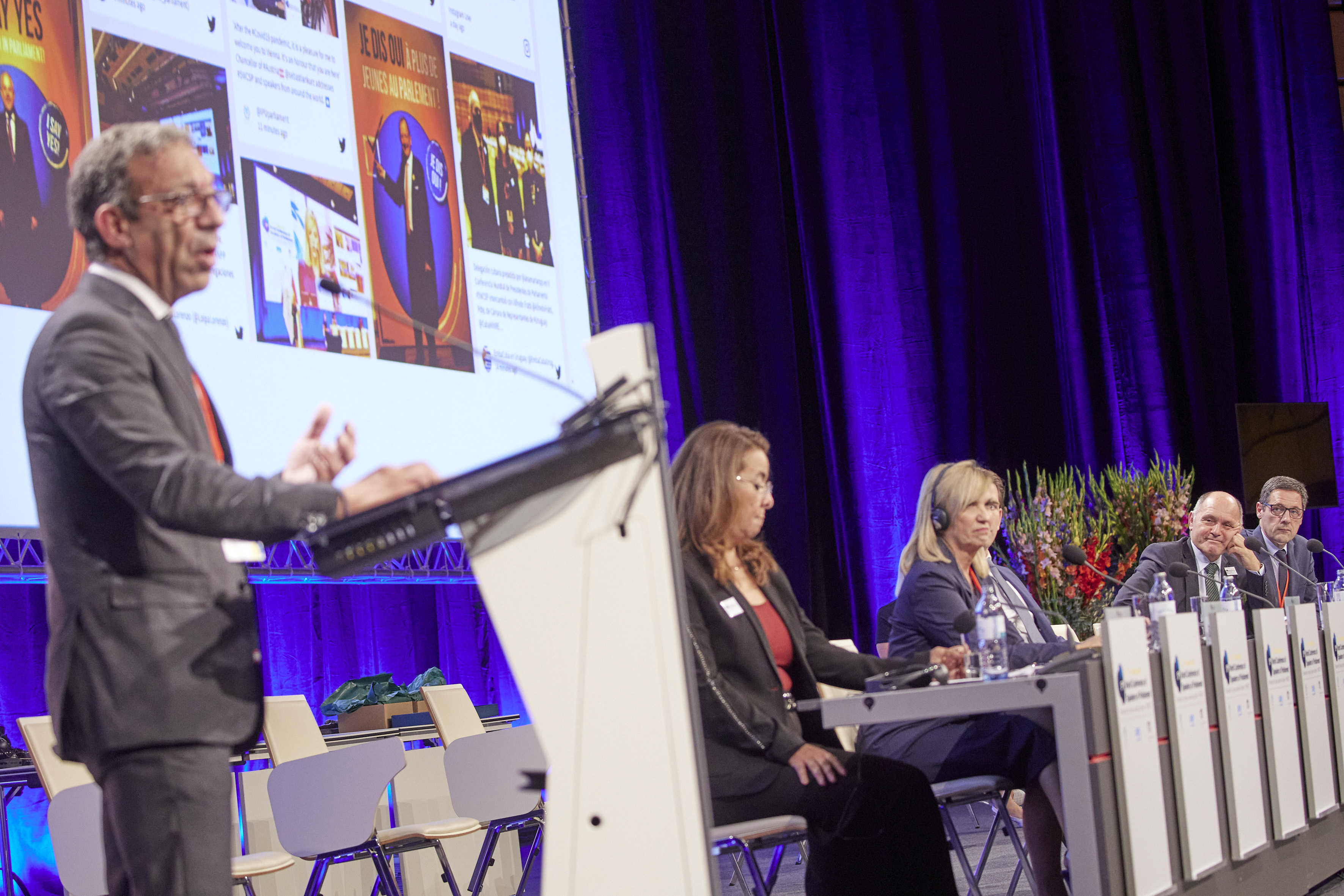From left: PACHECO, Duarte (Mr.), President of the IPU, SOBOTKA,Wolfgang (Mr.), Speaker of the Host Parliament , Speaker of the Austrian Federal Council, Mr. P. Raggl - Closing session