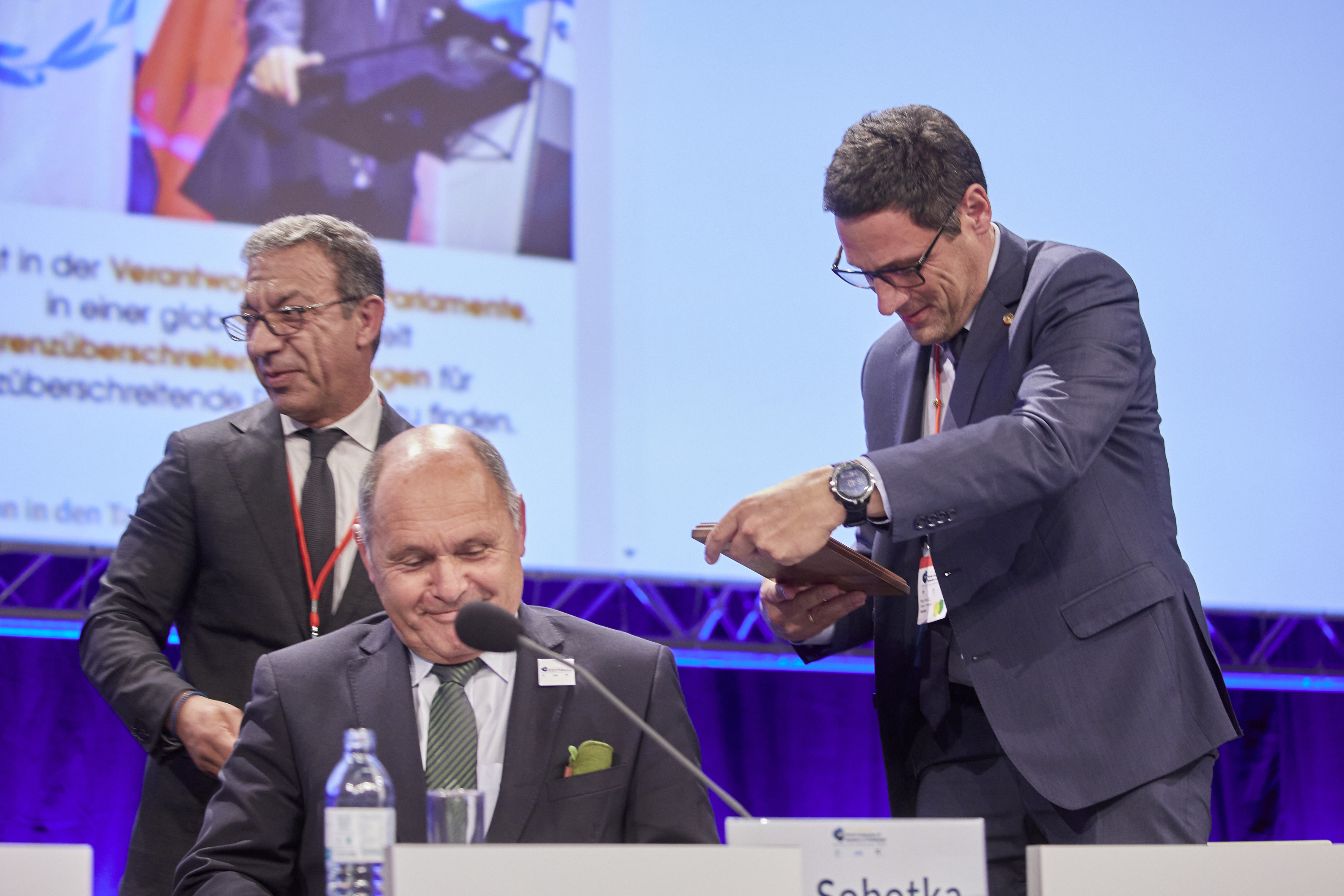 From left: PACHECO, Duarte (Mr.), President of the IPU, SOBOTKA,Wolfgang (Mr.), Speaker of the Host Parliament , Speaker of the Austrian Federal Council, Mr. P. Raggl - Closing session / Parlamentsdirektion/Thomas Topf